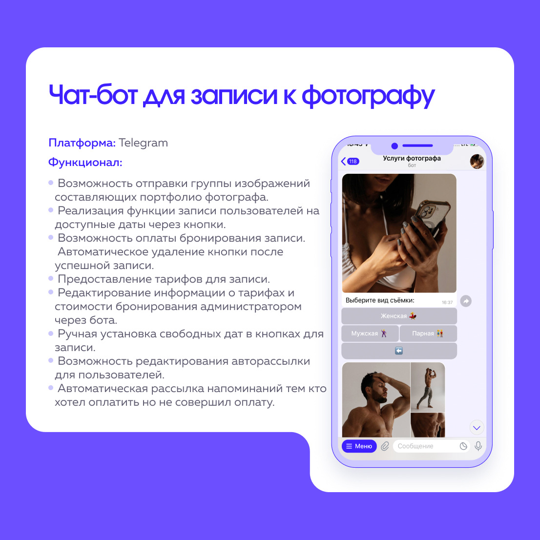 • Реализация функции записи пользователей на доступные даты через кнопки.